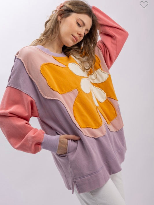 Blue velvet Oversized flower patch sweatshirt