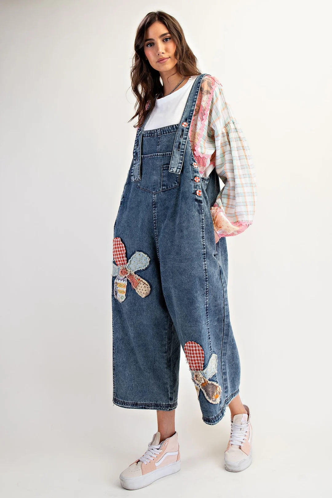 Easel patchwork denim overalls