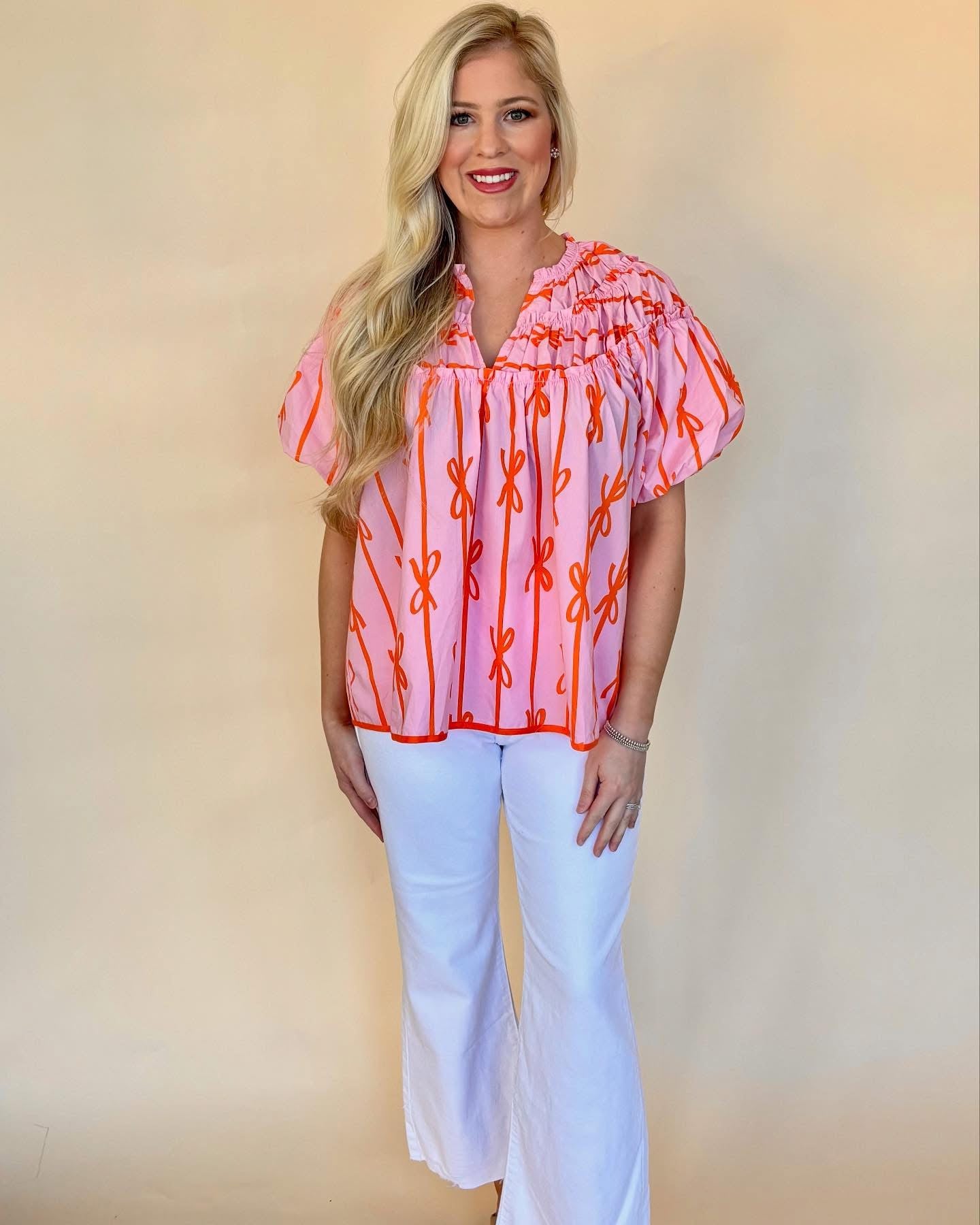Umgee blush pink dainty bow top