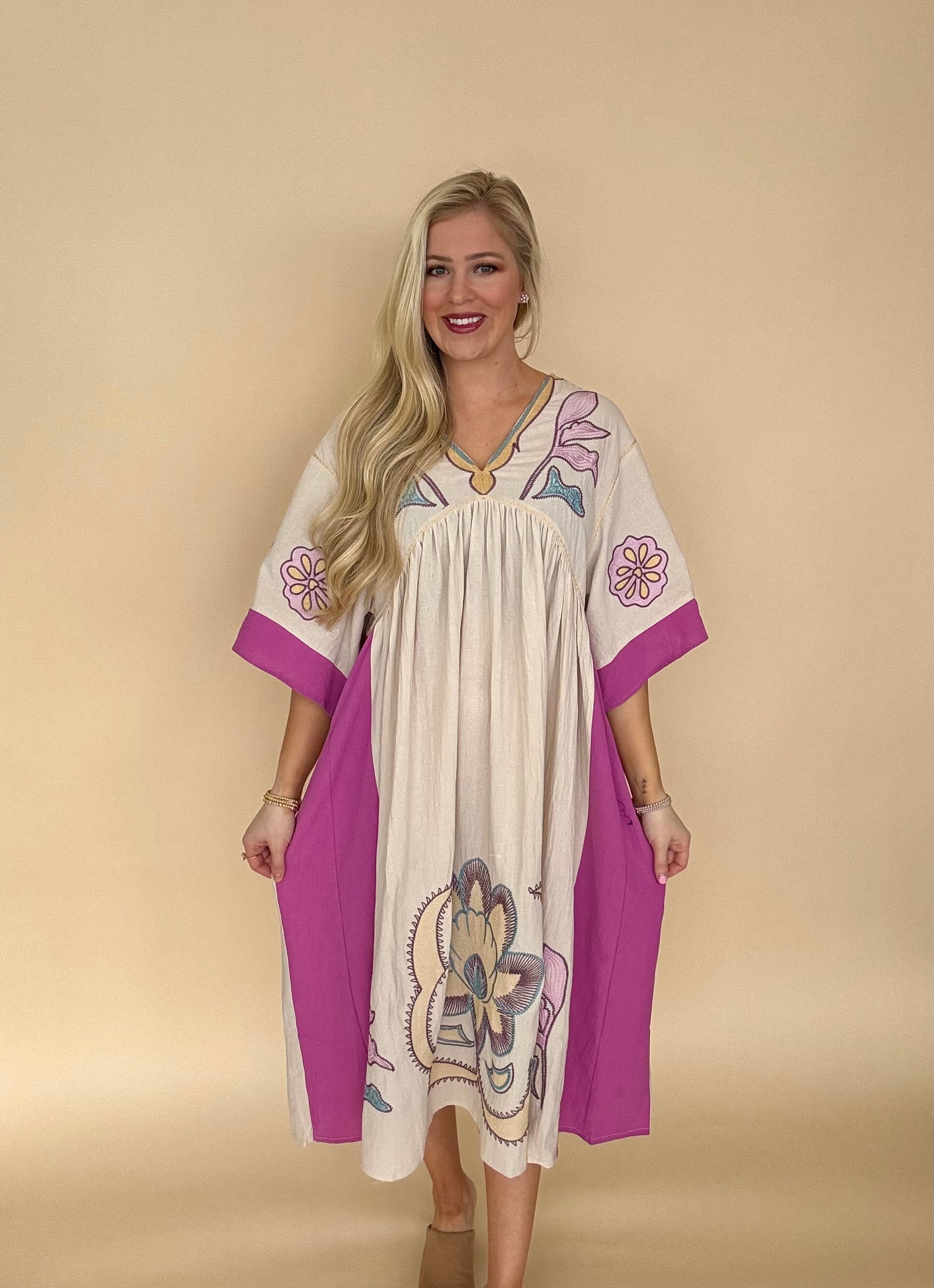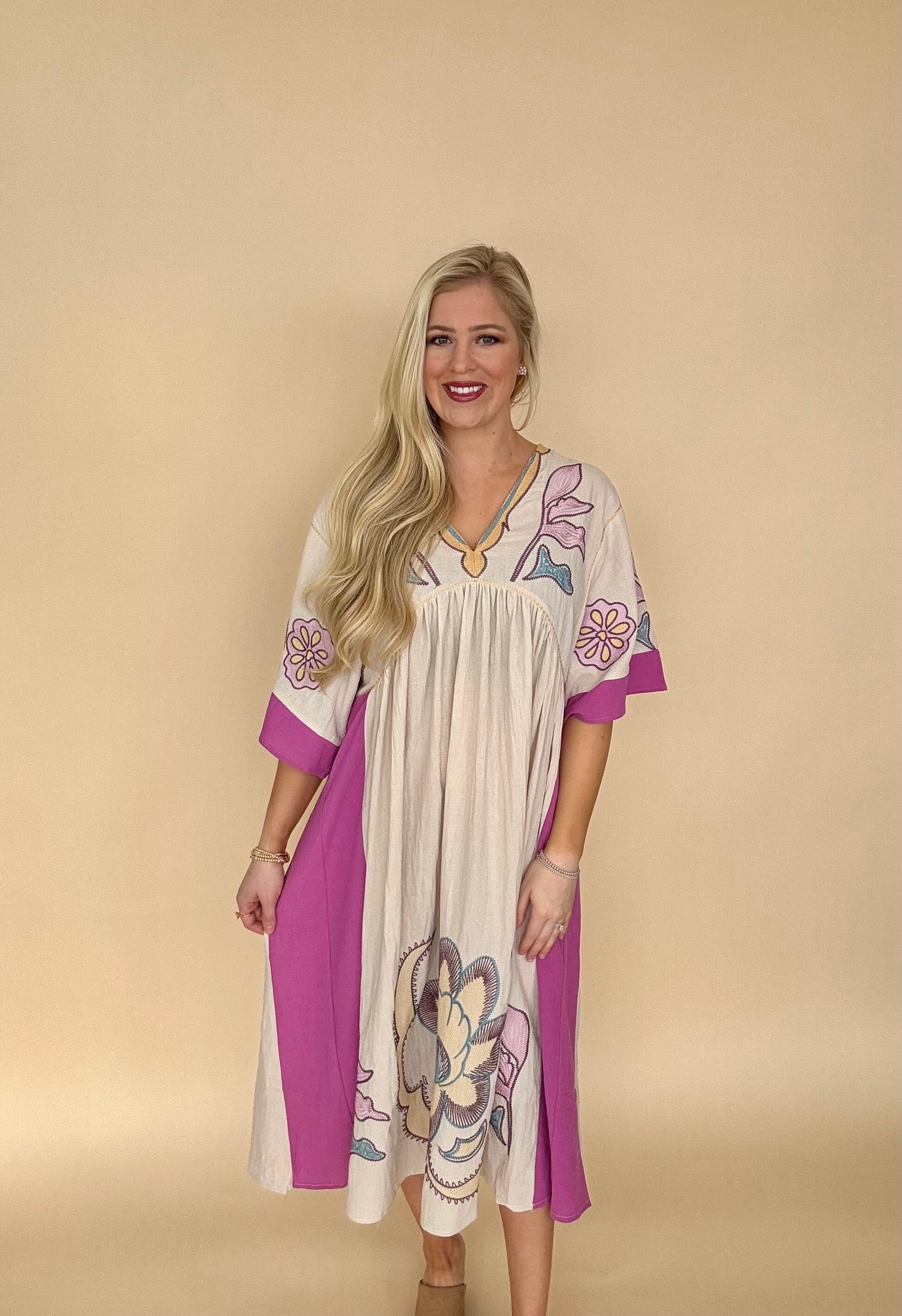 Umgee embroidered midi dress peony